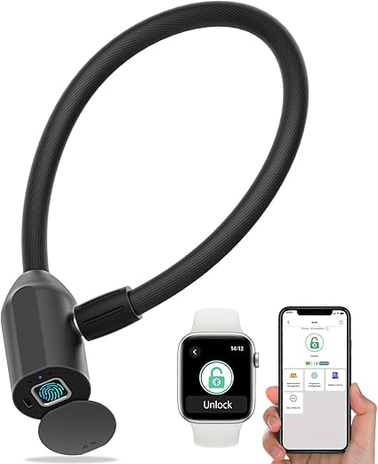 - 👍【Fingerprint Biometric Lock】Fingerprint lock support 20 fingerprint users. The smart cable lock can quickly unlock in 0.2s. Register your fingerprint in the APP.