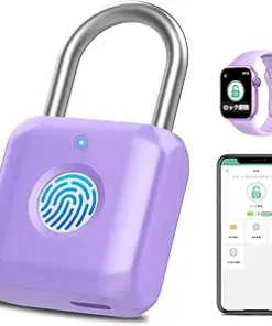 Fingerprint Lock-eLinkSmart-Biometric-Fingerprint Padlock eLinkSmart Gym Locker Lock for Girls Women with Phone App iOS Watch Metal Keyless Combination Locks for School Sports Locker Toolbox Hasp Storage Purple