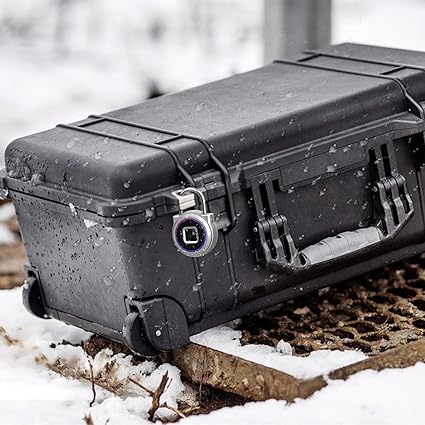 - 🔓【Small size and Weatherproof】This black fingerprint padlock with 0.4 CM diameter stainless steel lock shackle,fit gun case; (4.3+2.1)x 4.2×1.6CM, 0.074KG, Shackle inside long 1.7 CM, width 2 CM, for superior cut resistance. Weatherproof protects against dust and water.