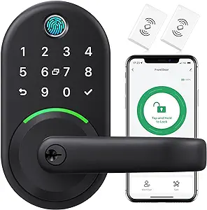- [Unlock Your Door with 6-In-1 Versatility] Experience unparalleled convenience and security with our state-of-the-art keyless entry door lock. Offering an impressive array of unlocking options, including fingerprint recognition, Bluetooth-enabled mobile app control, personalized passcodes, key fobs, mechanical keys, and even Alexa voice unlock and remote control lock (Requires a separately sold WiFi gateway). Enjoy the freedom to choose the unlocking method that best suits your needs and preferences.